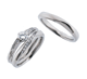 シンプルで、流れるようなダイヤモンドがキラリ。 シンプルなデザインの中に、男性様は、つや消し加工をし、女性様は、ダイヤモンドを片側に流れるように入れるなど、やわらかく優しいイメージのお二人らしいアレンジの指輪が出来上がりました。とっても似合っていましたね。このたびは、おめでとうございます!