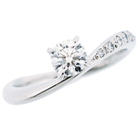 エンゲージリングは、優しい曲線とメレダイヤモンドが上品なデザインです。 サイドから見ると可愛いハートが隠れています。 政則様から晃子様へのさり気ない優しさと愛情がこもっています。