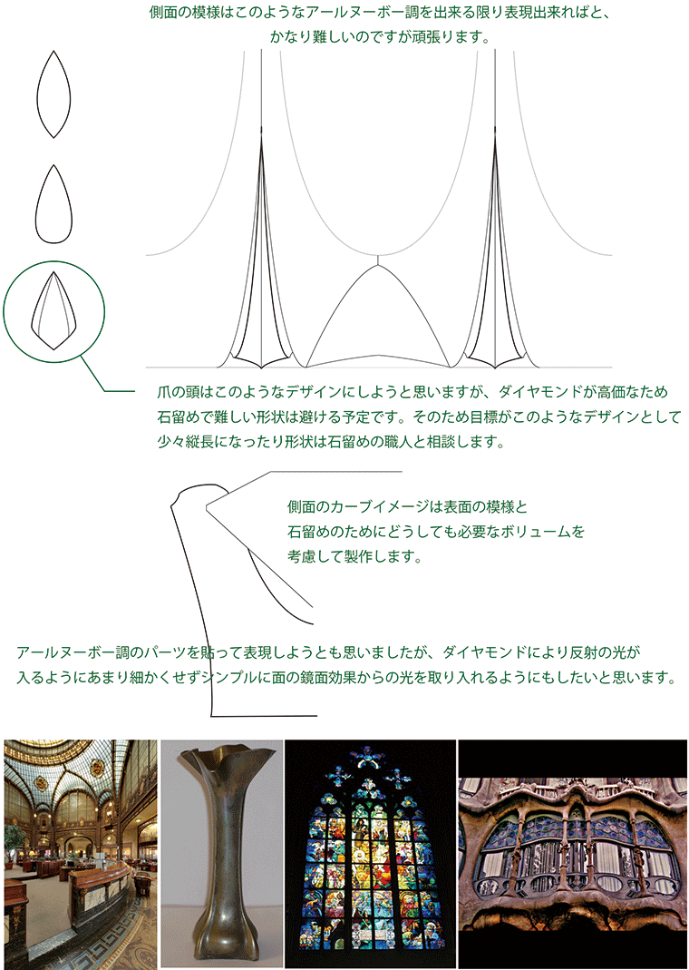 全体でダイヤモンドに影響しない箇所を出来る限りアールヌーボーに仕上げた絶品です。