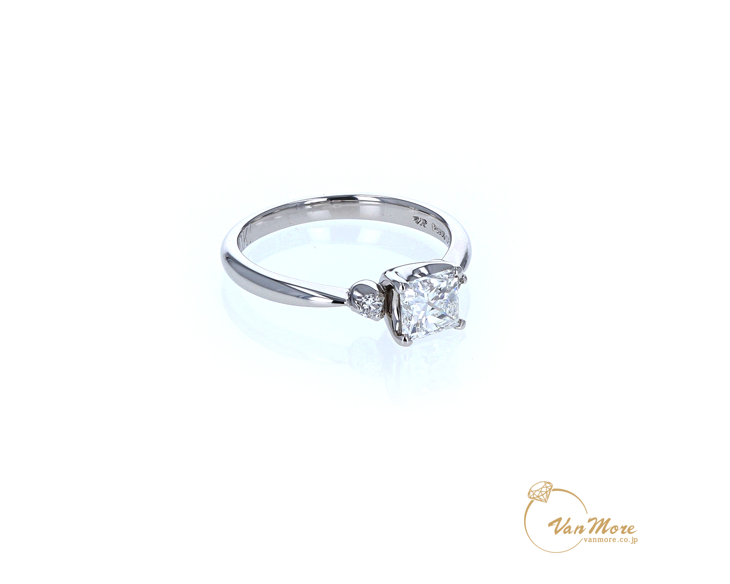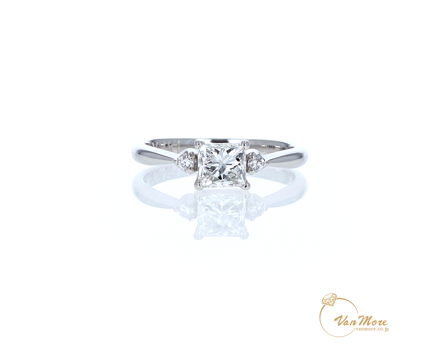 よくあるラウンドではなく四角いプリンセスカットのダイヤモンド。