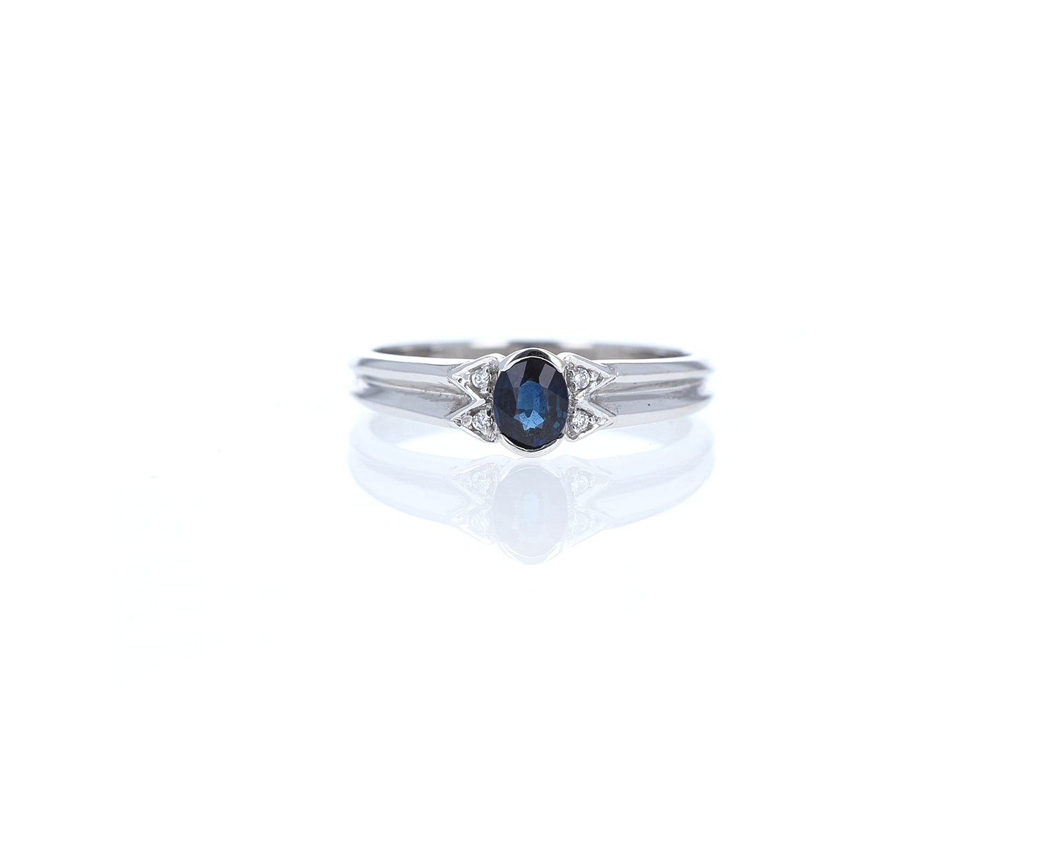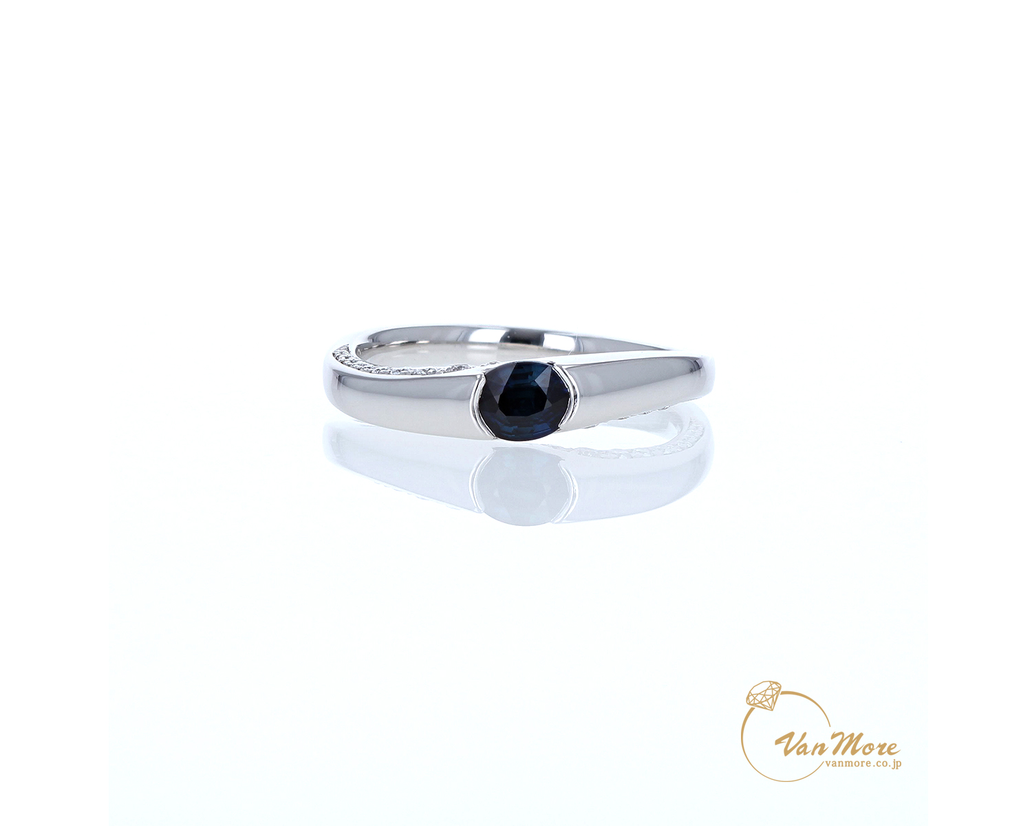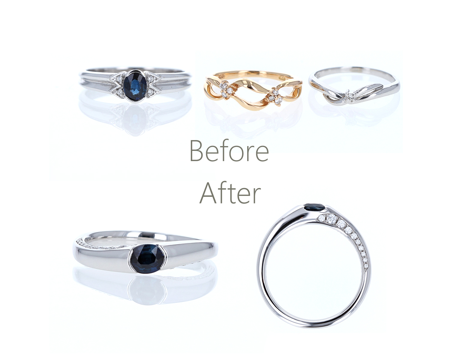 新婚旅行で購入されたサファイアのリング。思い出のあるお品を、身につけたくなるデザインに作り変えたいとご相談くださいました。