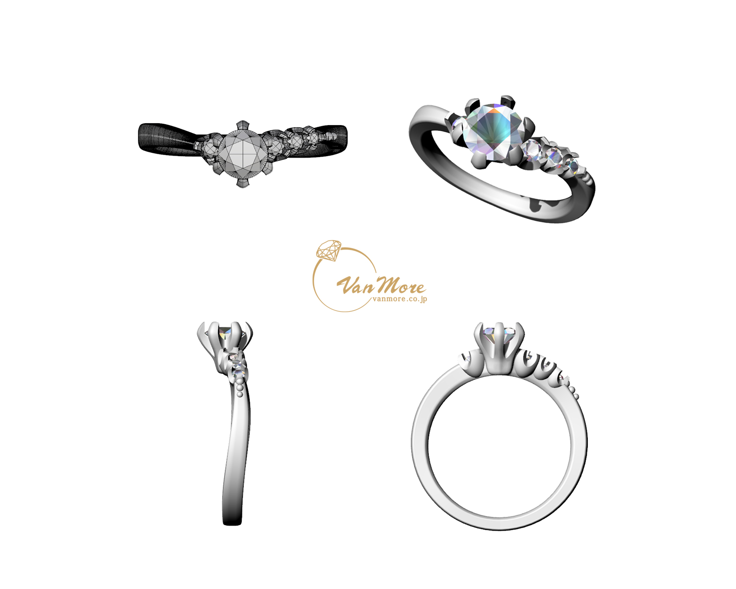 マリッジリングはこだわりの曲線、そして受け継いだダイヤモンドはCADグラフィックによる完全オーダーへ。
