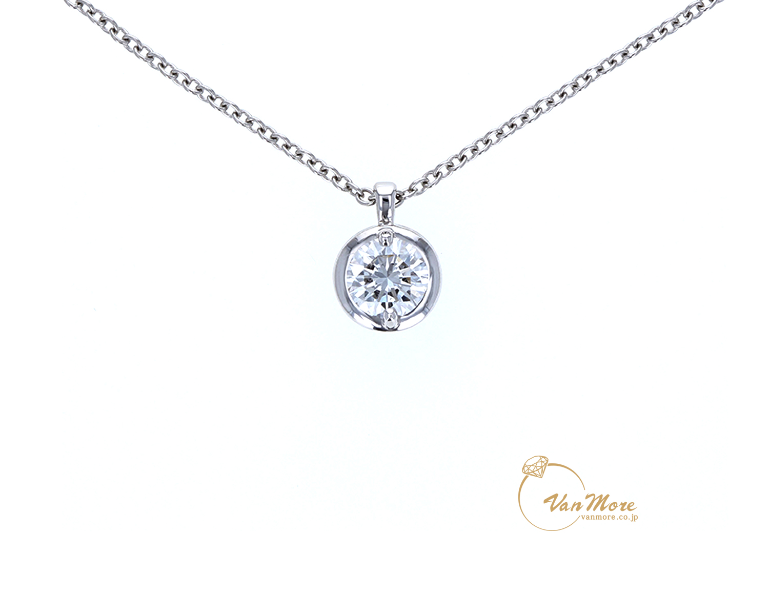 大きなダイヤモンドをシンプルなデザインへリフォーム。長さも50㎝のチェーンと太さもバランスよく出来上がりました。