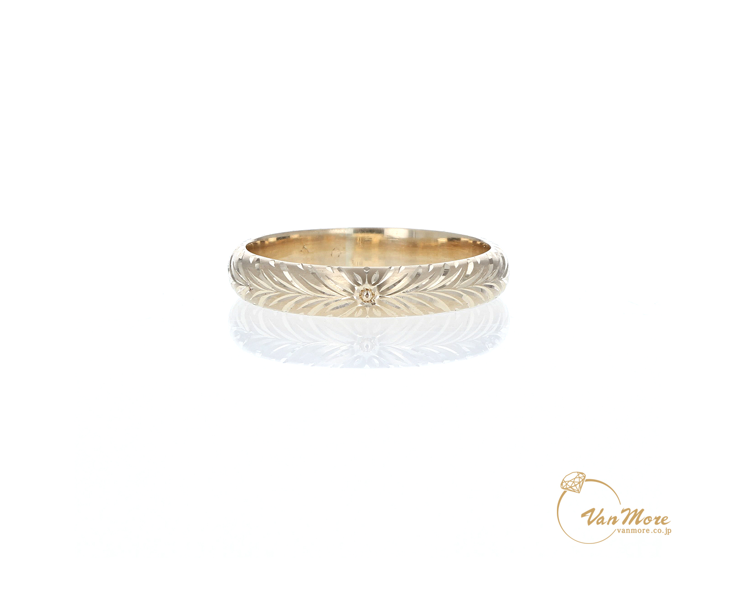 甲丸のシンプルな指輪は彫模様を施しまったく見えるデザインへ生まれ変わりました。ご愛用くださいませ。この度は大切な指輪のリフォーム制作をさせていただきありがとうございます。