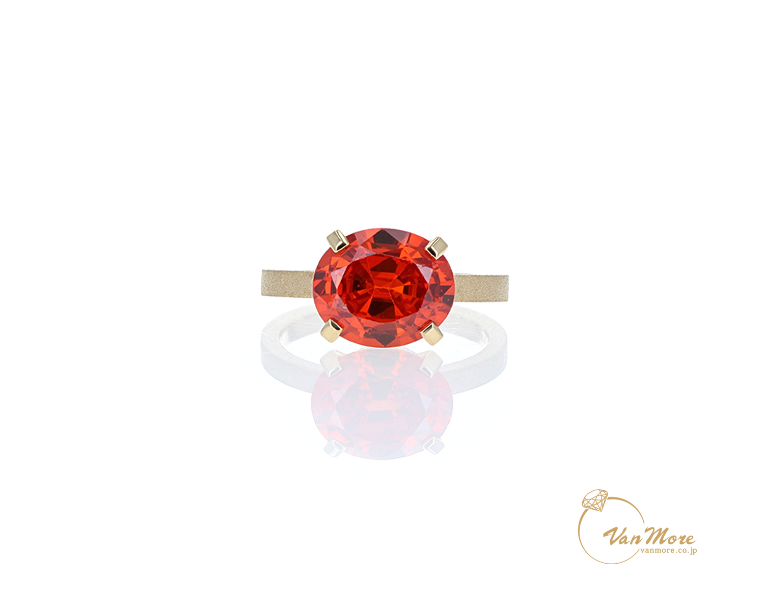 指輪はアルミナ加工を施しK18がおしゃれな枠に輝くオレンジ色。ピアスにはお持ちのペンダントとセットになりとても活躍しそうです。