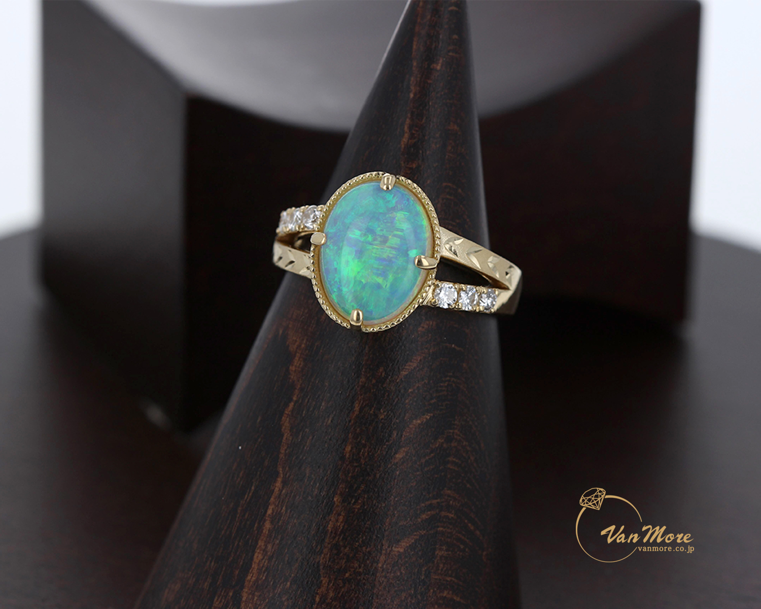 オパールは乳白色系で、緑に赤に綺麗な色味の入ったものでした。