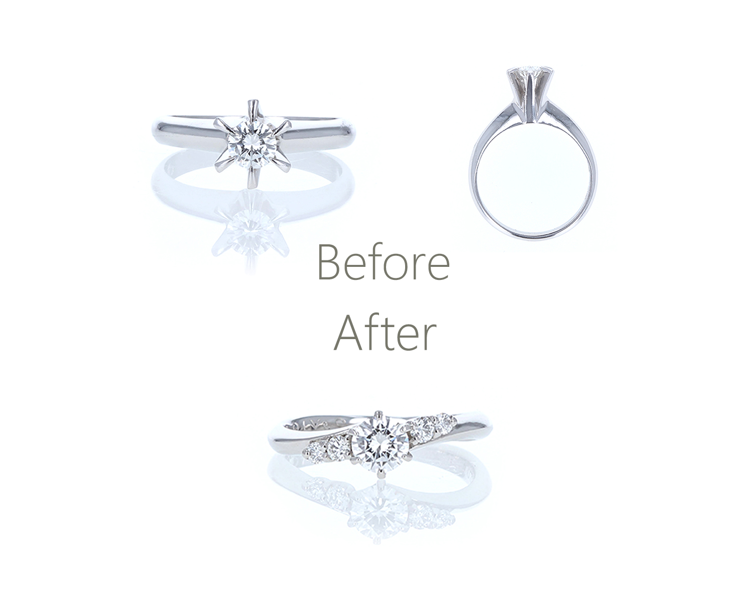綺麗に見えるようラインを整え、ダイヤモンドの彫留め部分をを少し変更しお作りいただきました。