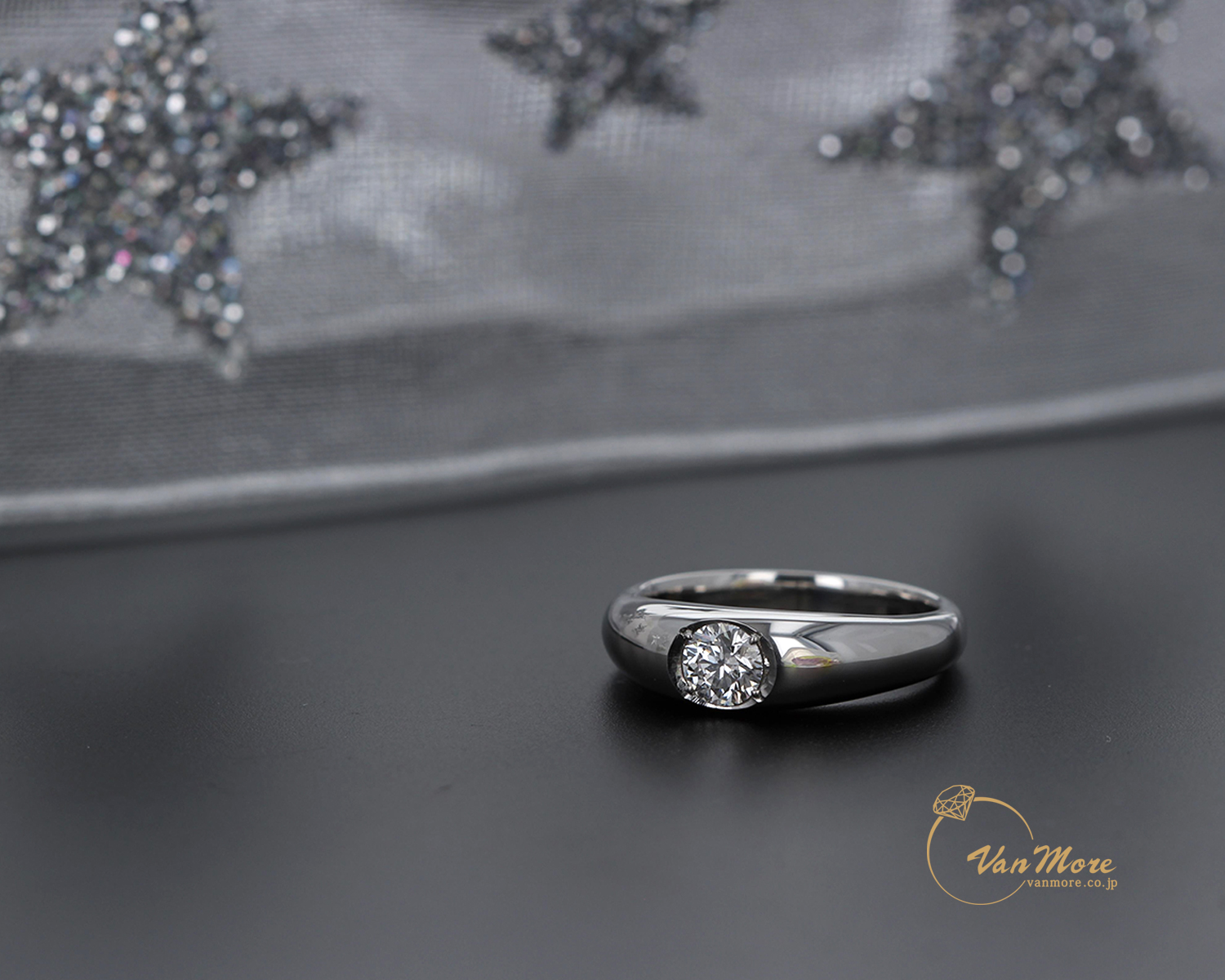女性は音楽系なので、舞台でも映える大きめダイヤモンドの入ったリングに。