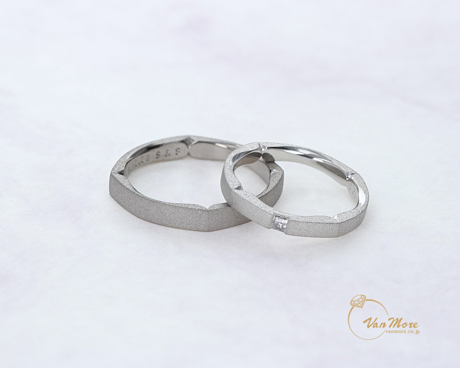 女性様は中央にプリンセスカットのダイヤモンドを留めました。