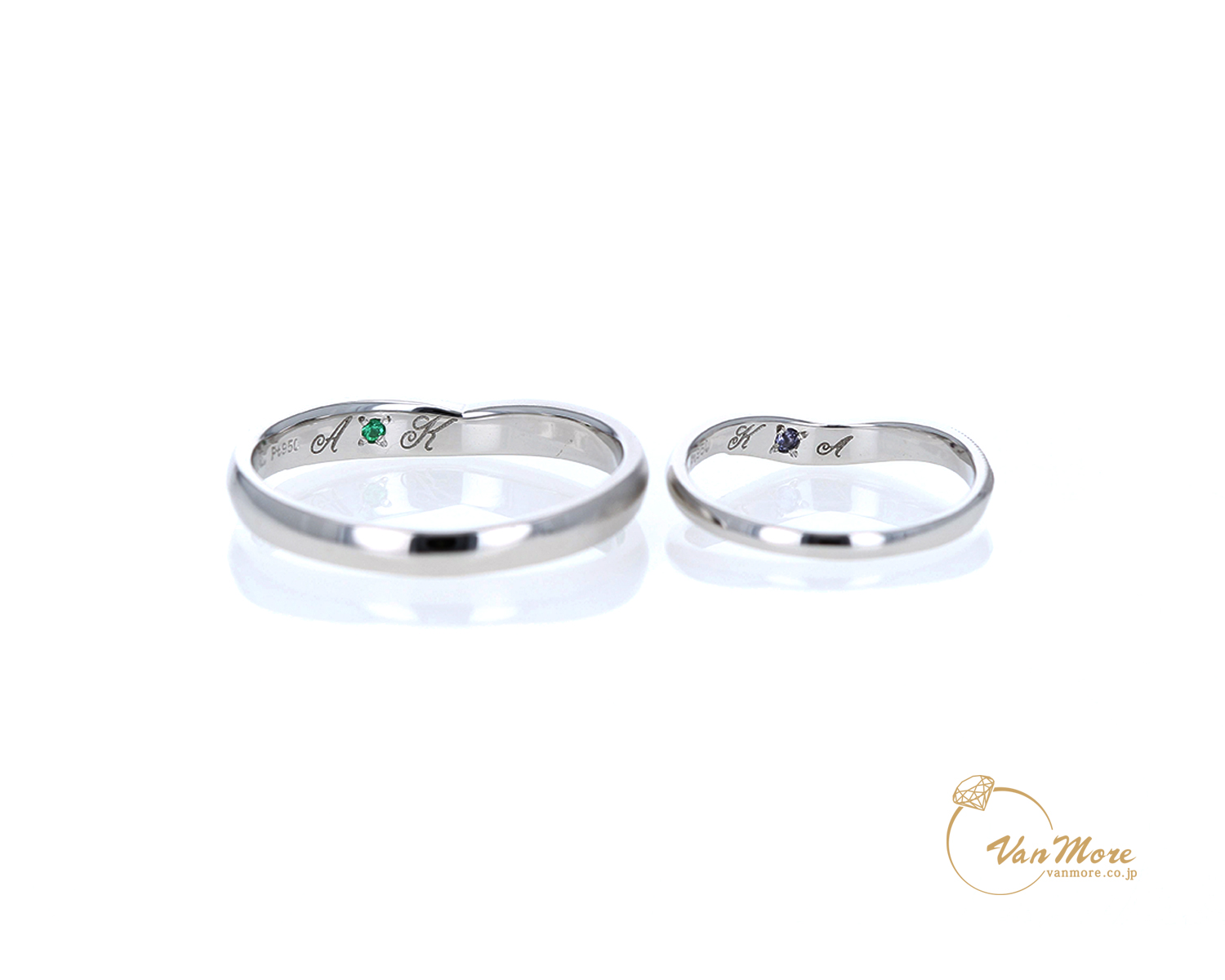 内側にはレーザーでイニシャルと誕生石のエメラルド、タンザナイトをお入れました。