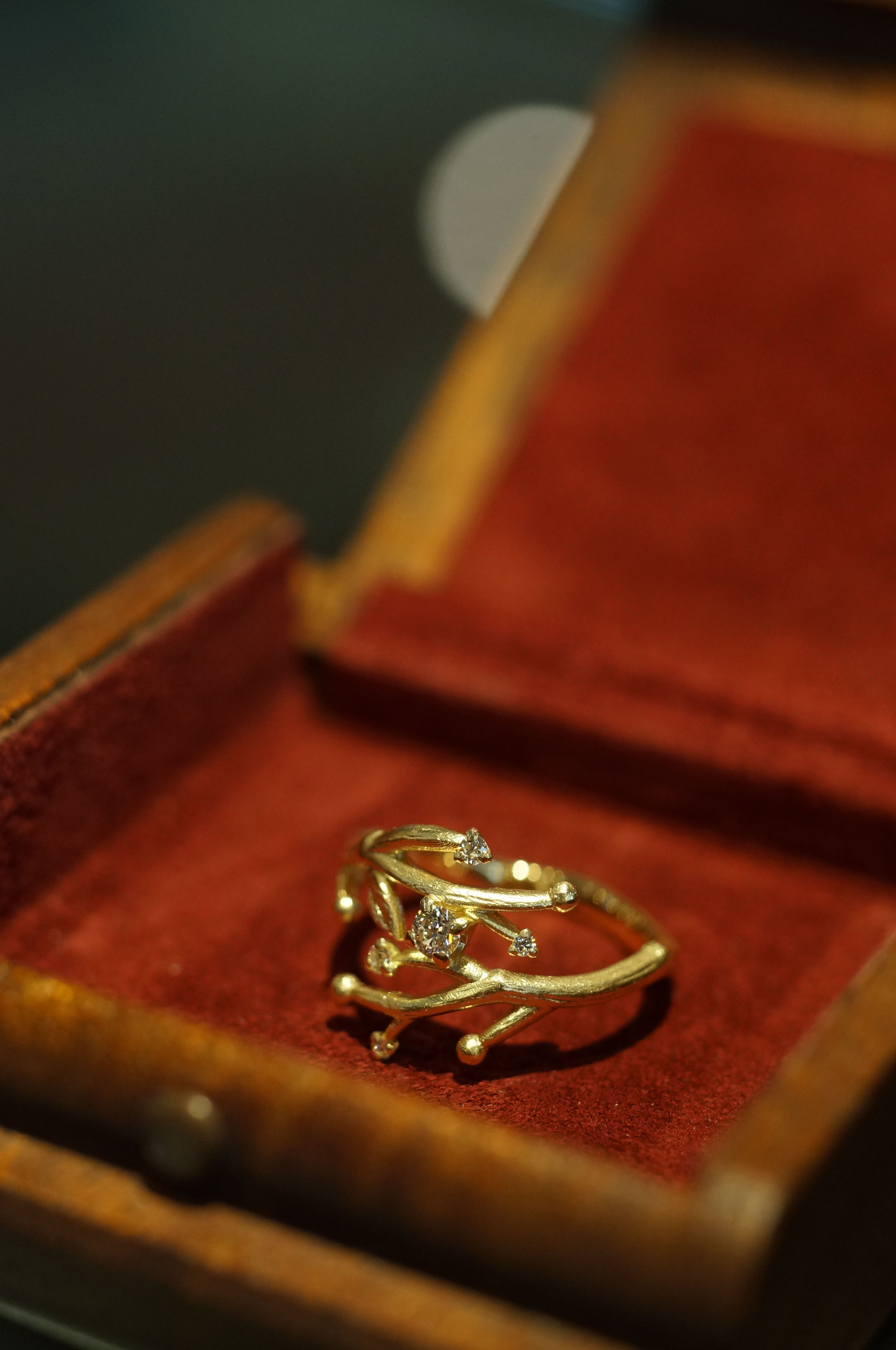 組み立て、石留も難しいデザインでしたので、熟練の1級技能士がお作りいたしました。