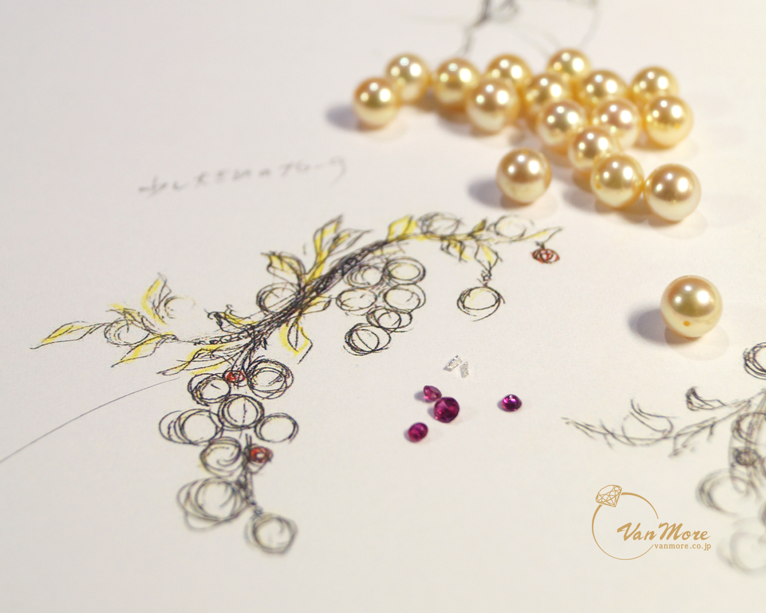 形の違う宝石ですが、色味はまとまっており、リングとのセット使いもしやすい色味でしたので、とても楽しくデザインを考えることができました◎