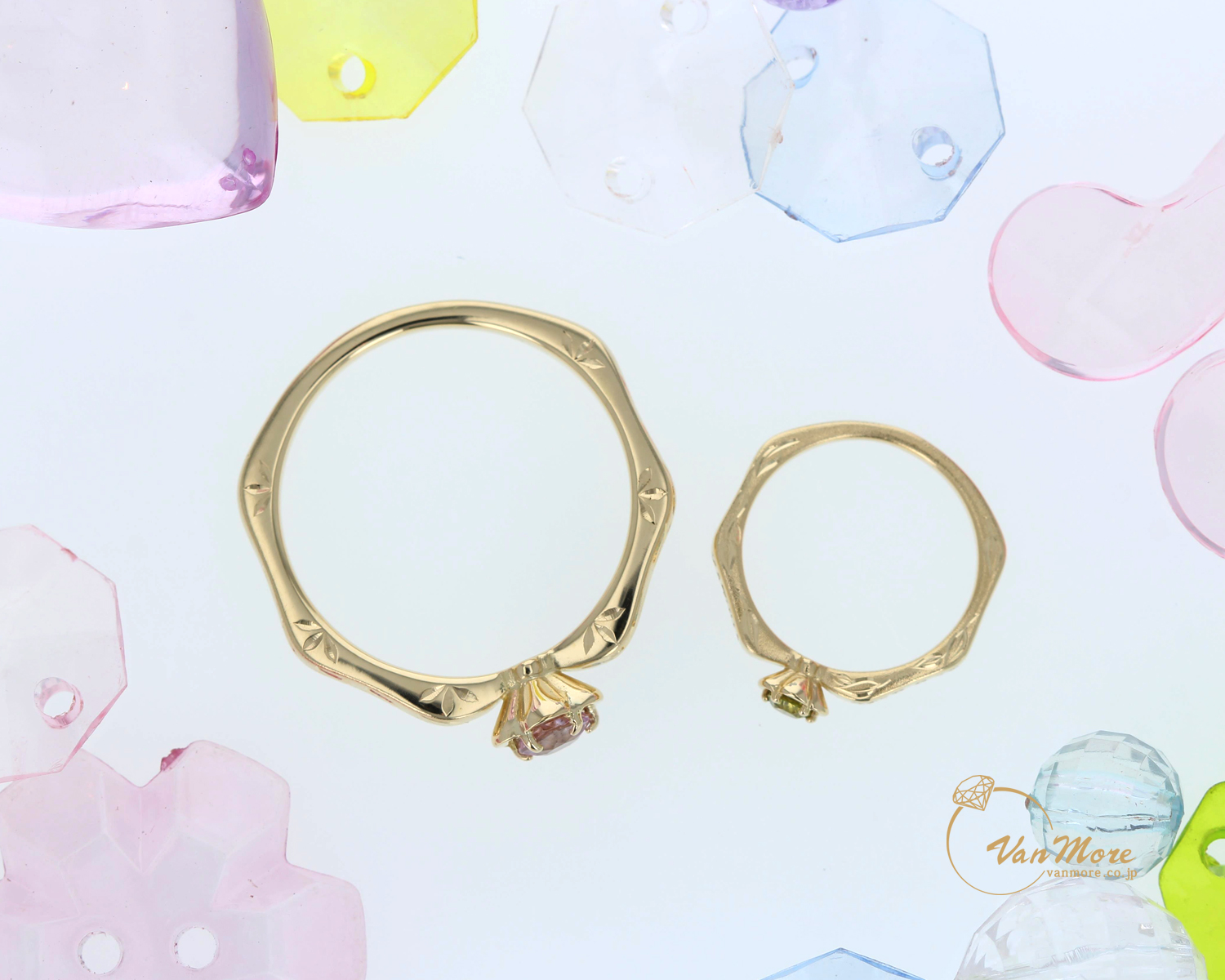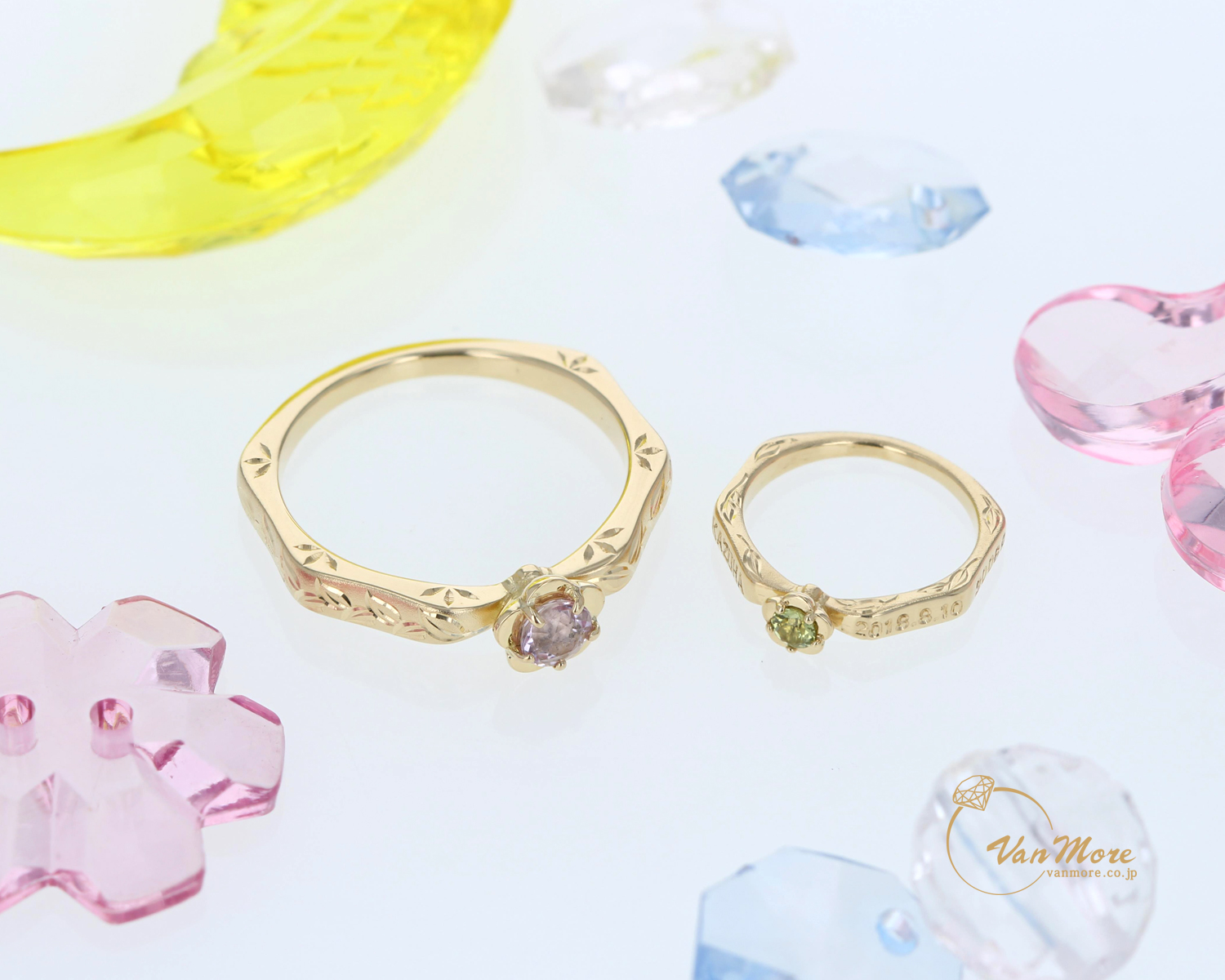 お子様のKちゃん1歳のお誕生日にママとお揃いの形の指輪をお作りしました。