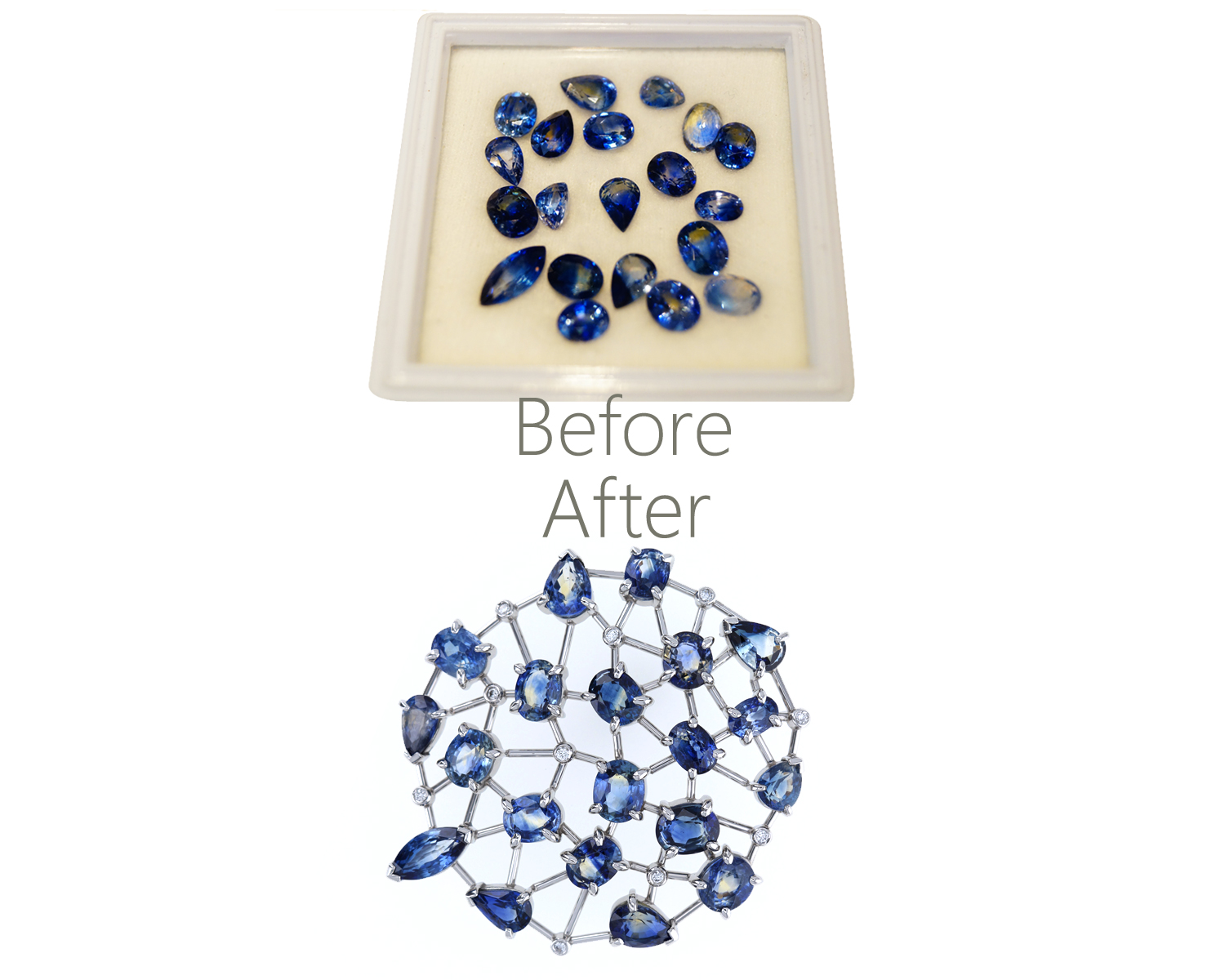 「お客様の非加熱サファイア20石を使用しペンダントをお作りしました。」