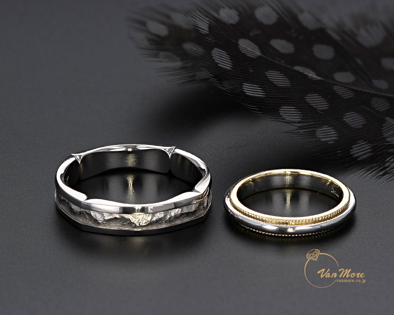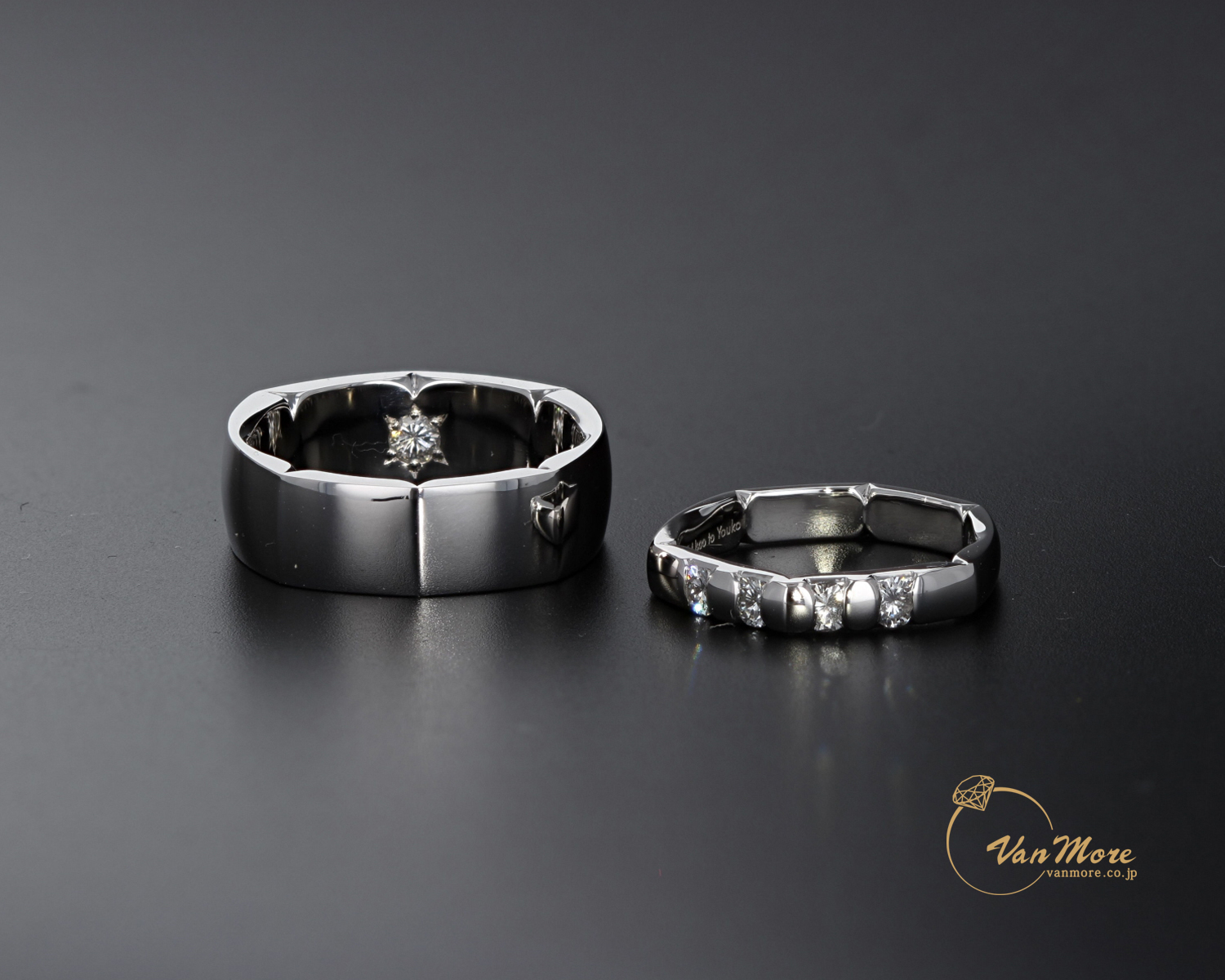 無理にデザインは合わせない、でも、内側の刻印はお二人とも同じこだわりの文字をしっかり刻んでいます☆