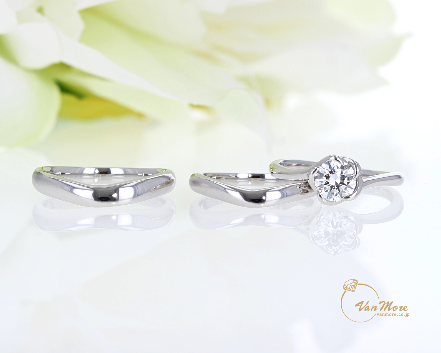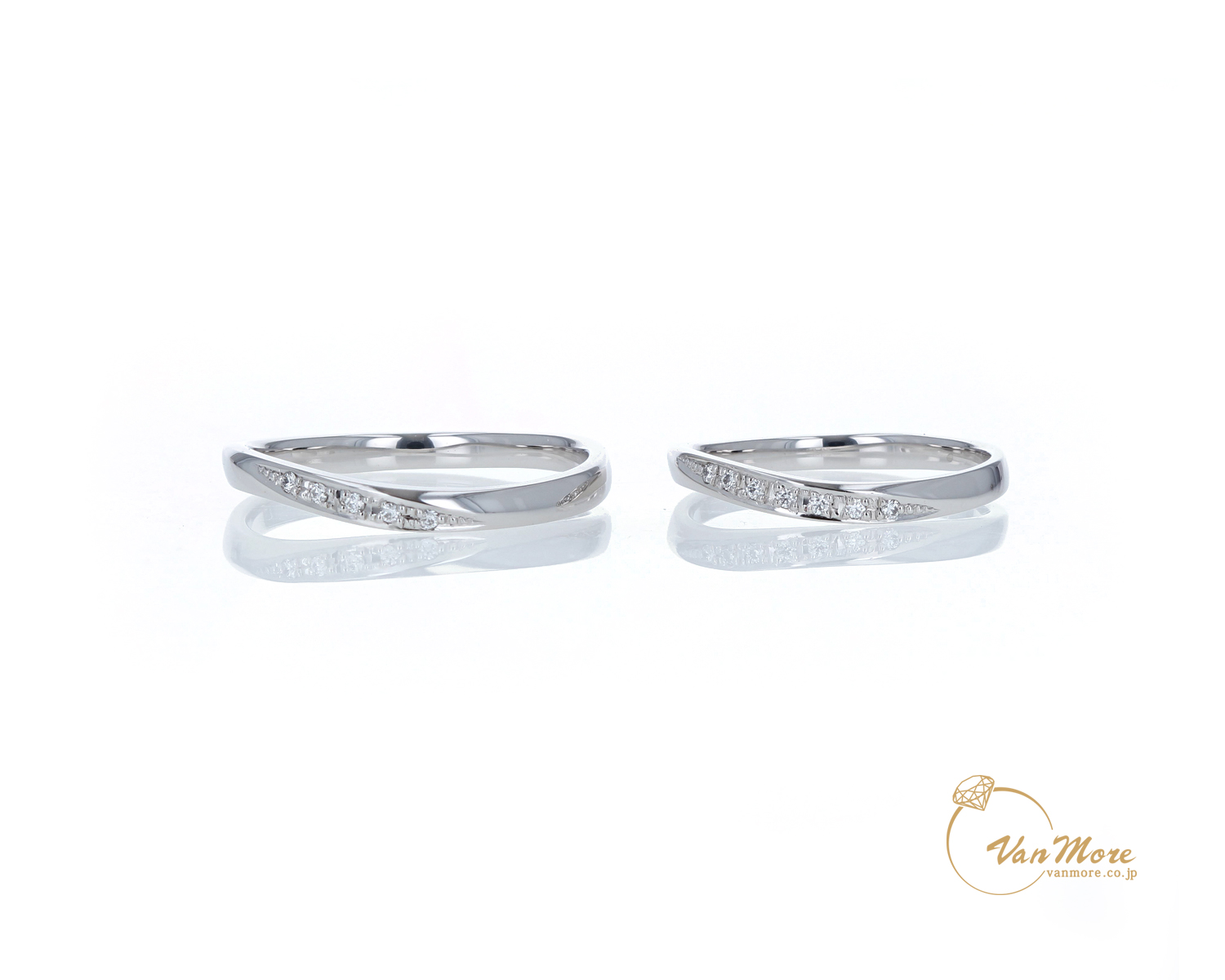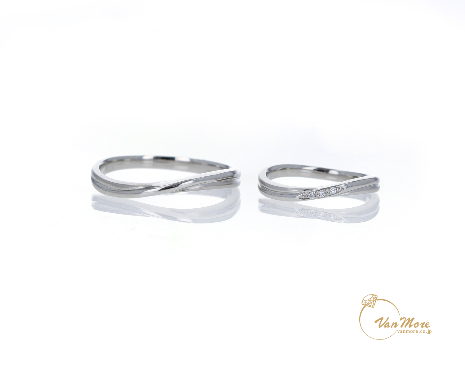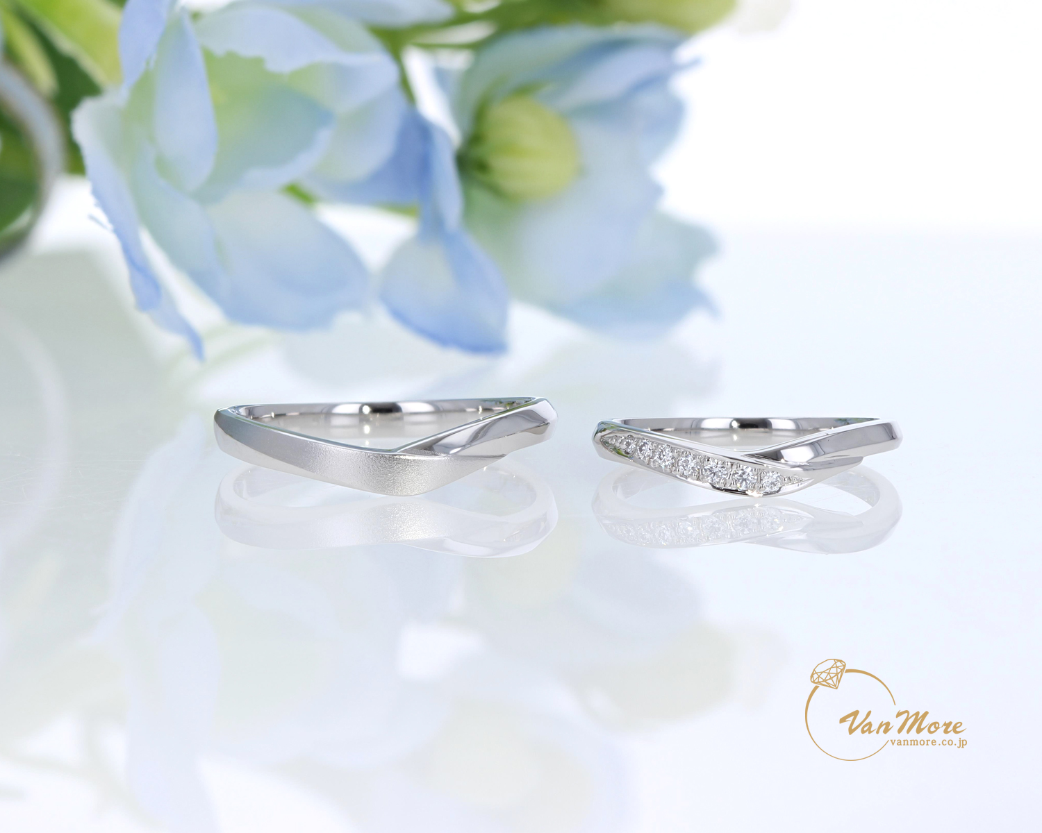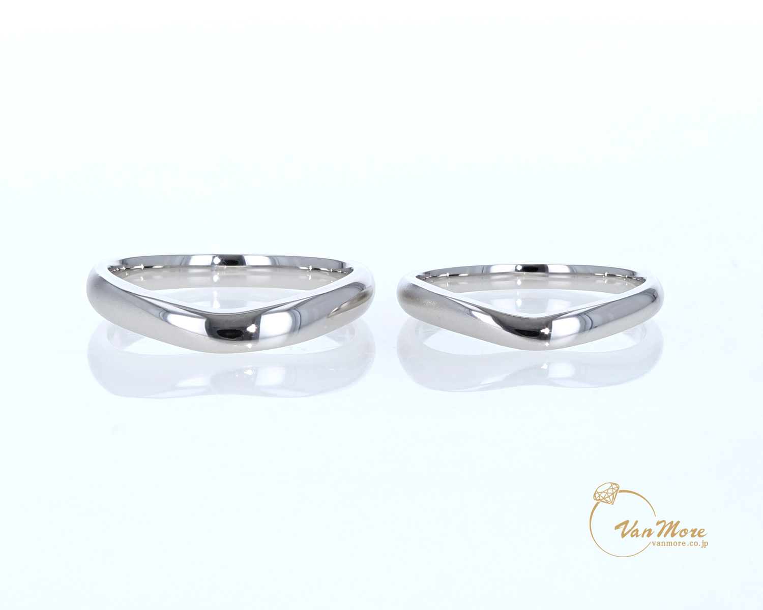 ご結婚指輪は重ねて着けられても素敵な優しいV字のラインです。