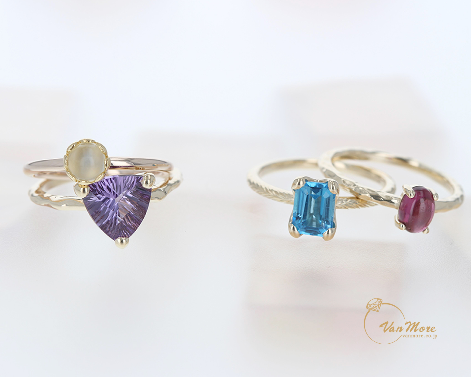 それぞれは、細くて華奢なリングですが、重ねても着けられるように。と