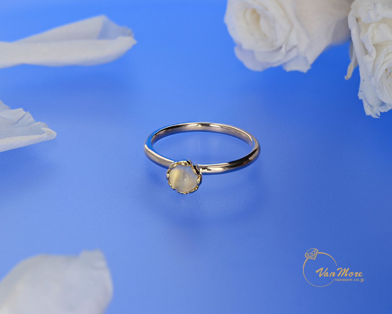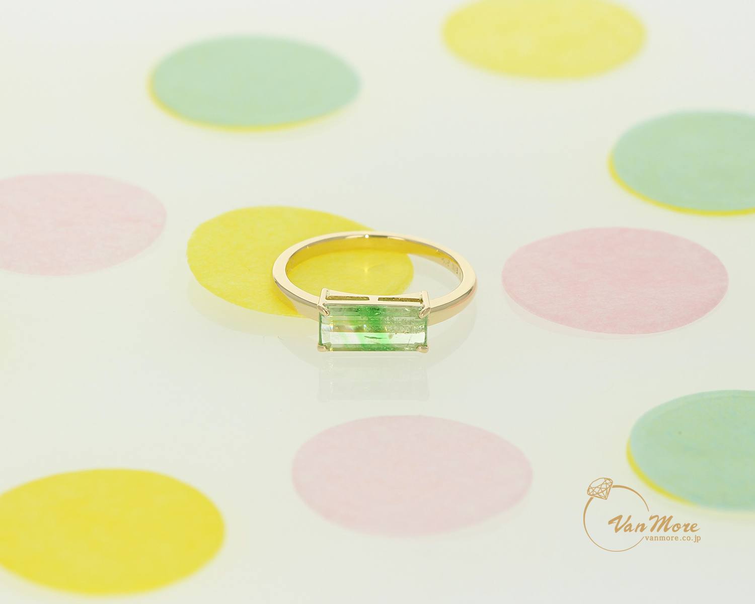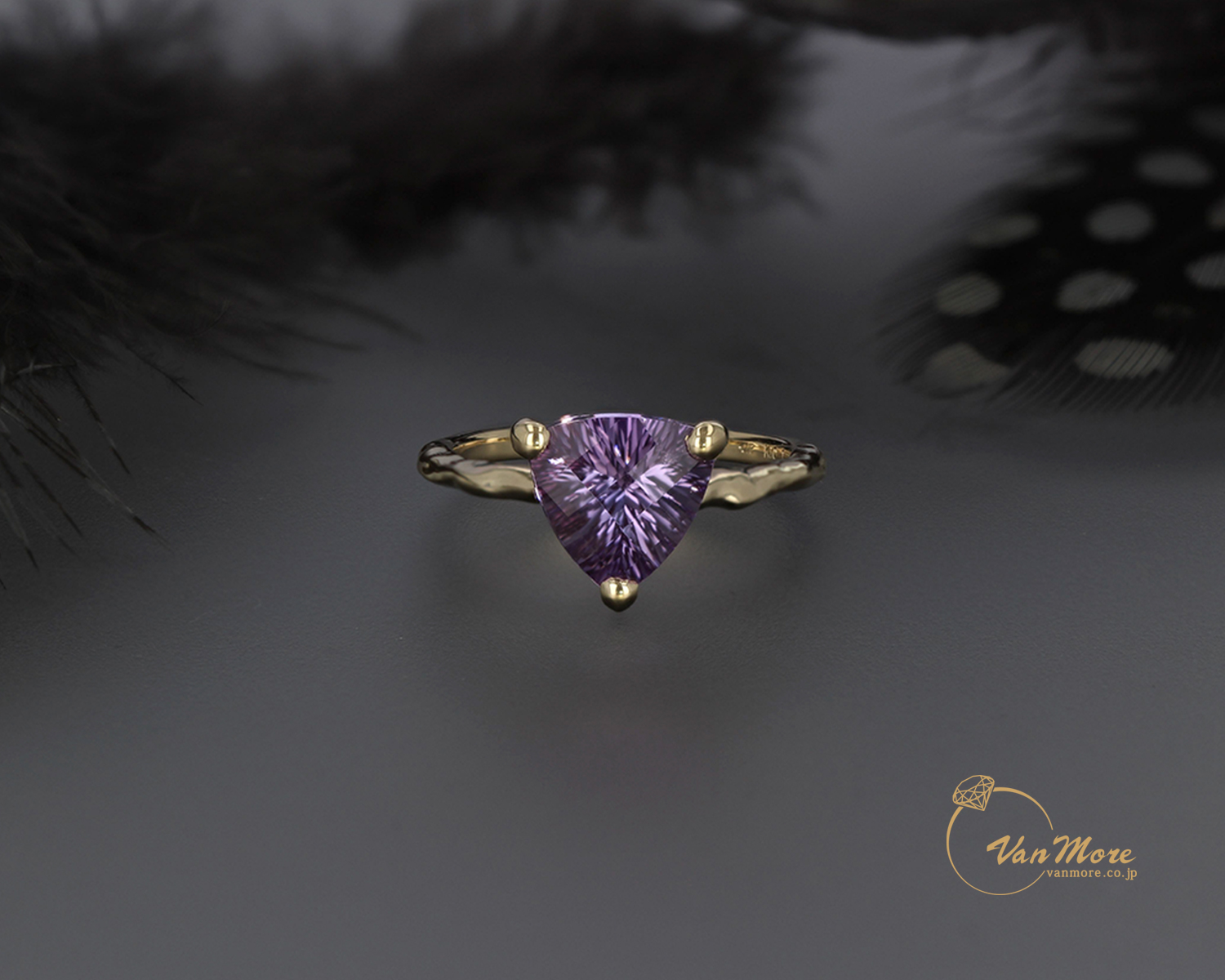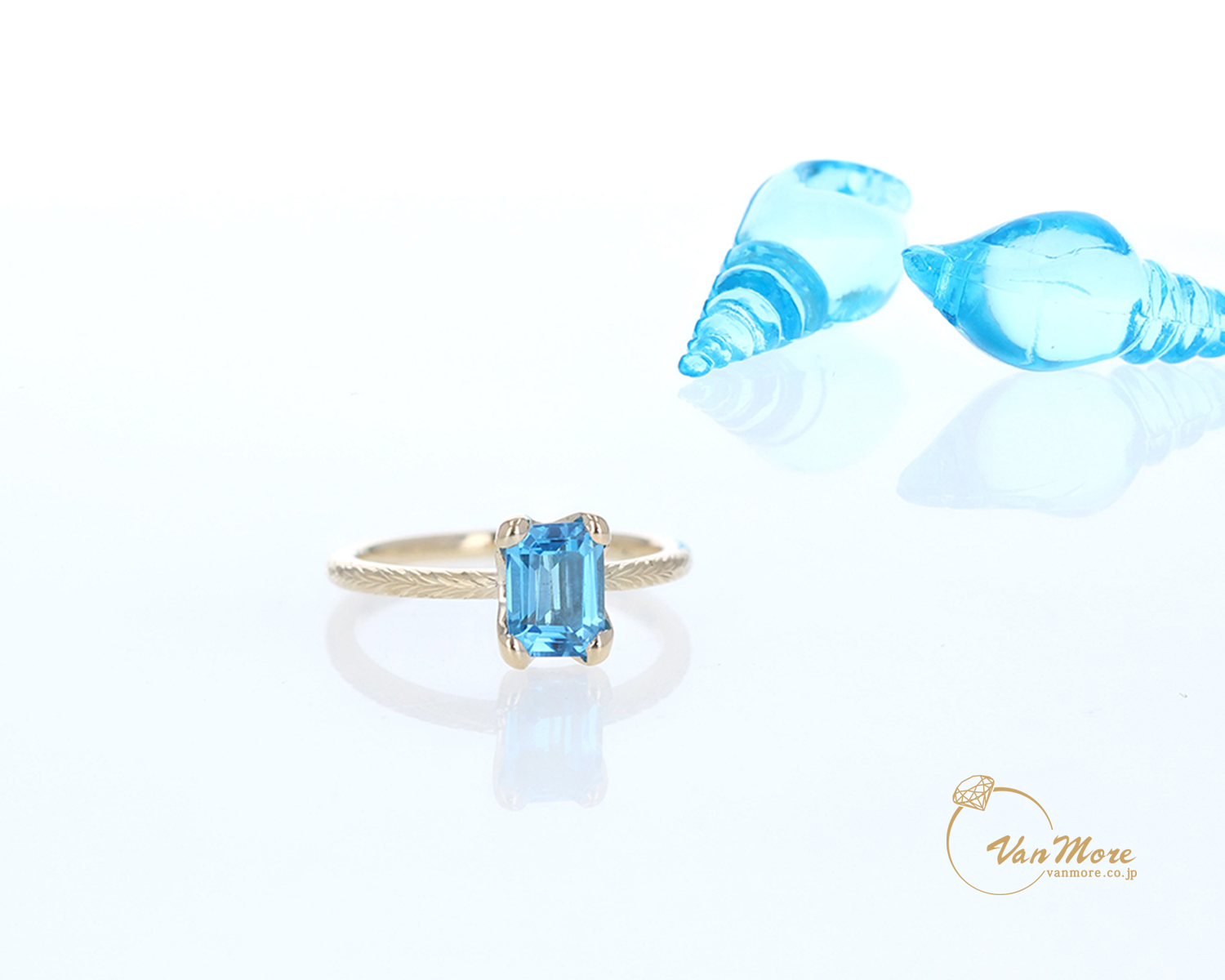 地金(金属)をK10にすることによって石の色が鮮やかになり、素敵なリングになりました。