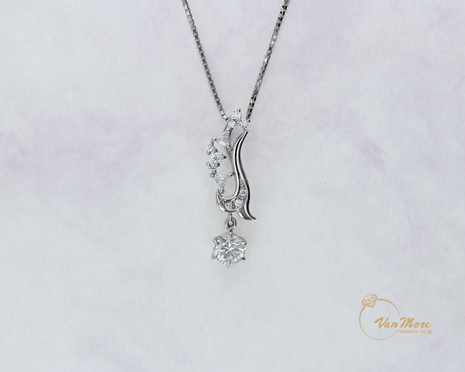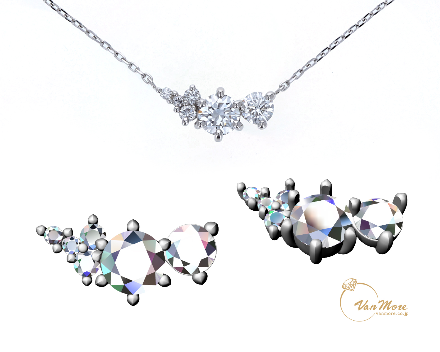 主役のラウンドダイヤも引き立つ個性ある素敵なペンダントネックレスが完成いたしました!