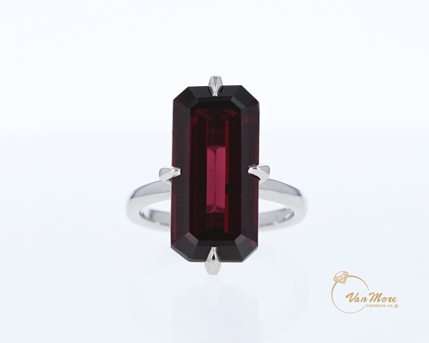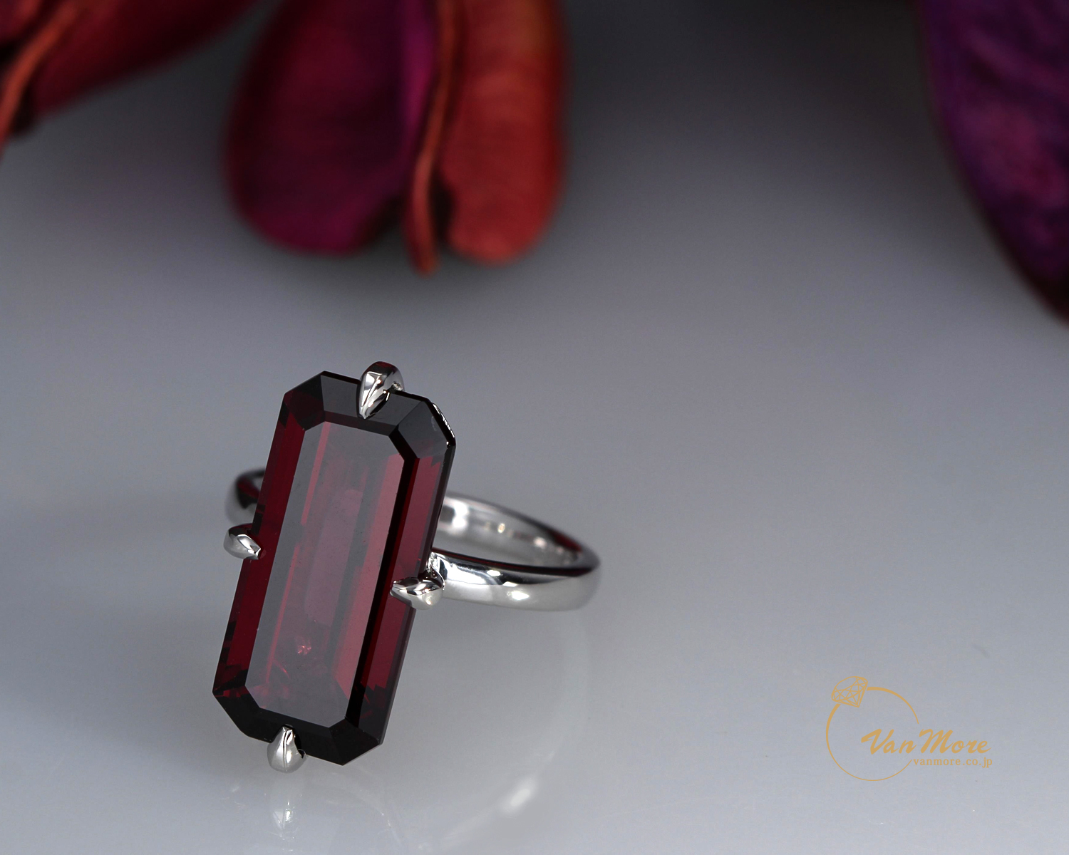 薔薇のように深い真紅がとても魅力的な長方形のガーネットを選びいただきました。