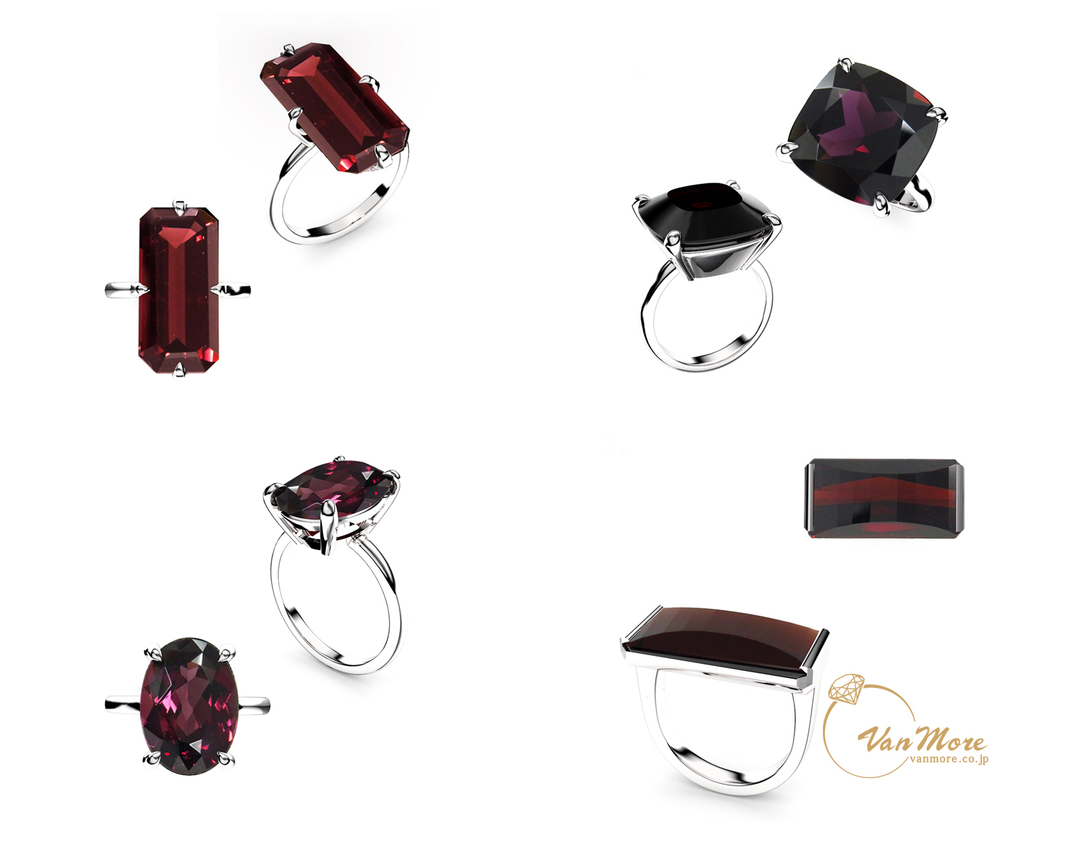 ガーネットの指輪をご希望ということで、ルースの画像からデザインをいくつかご提案。