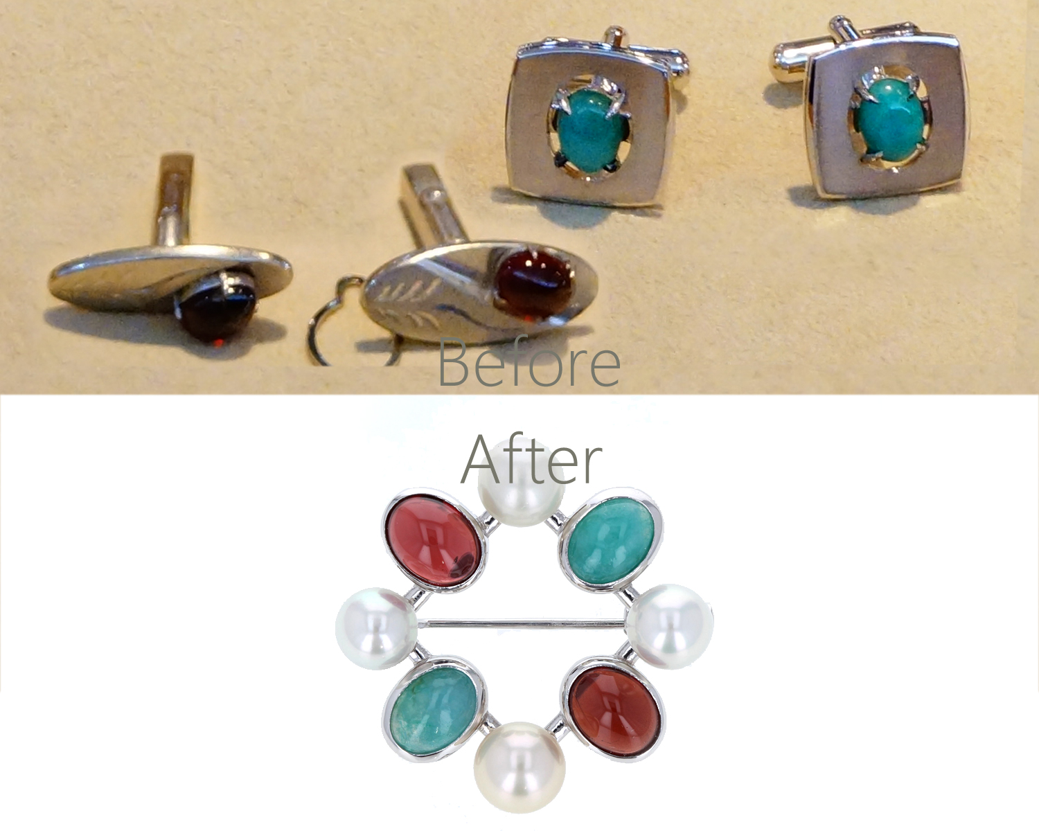 今は使用しなくなってしまったカフスも、新しくブローチとして生まれ変わりました。