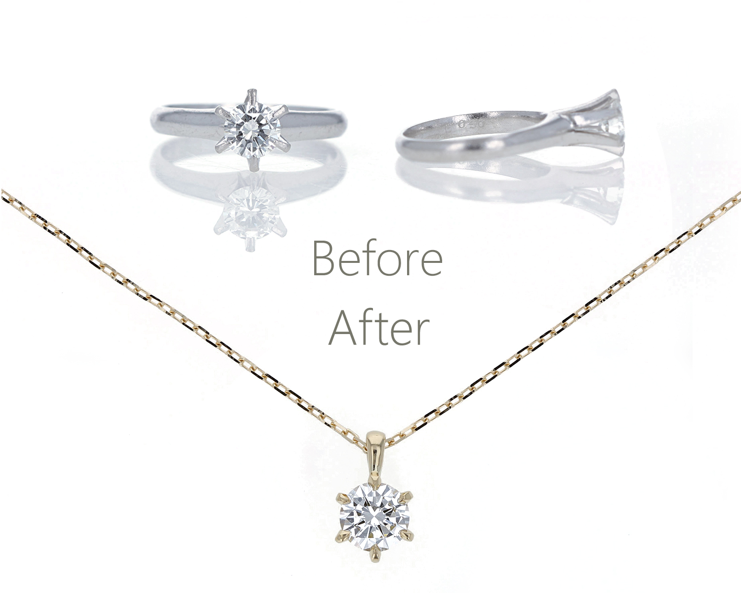 このリングのダイヤすべてを利用してペンダントネックレスにリフォームしたいとご相談をいただきました。
