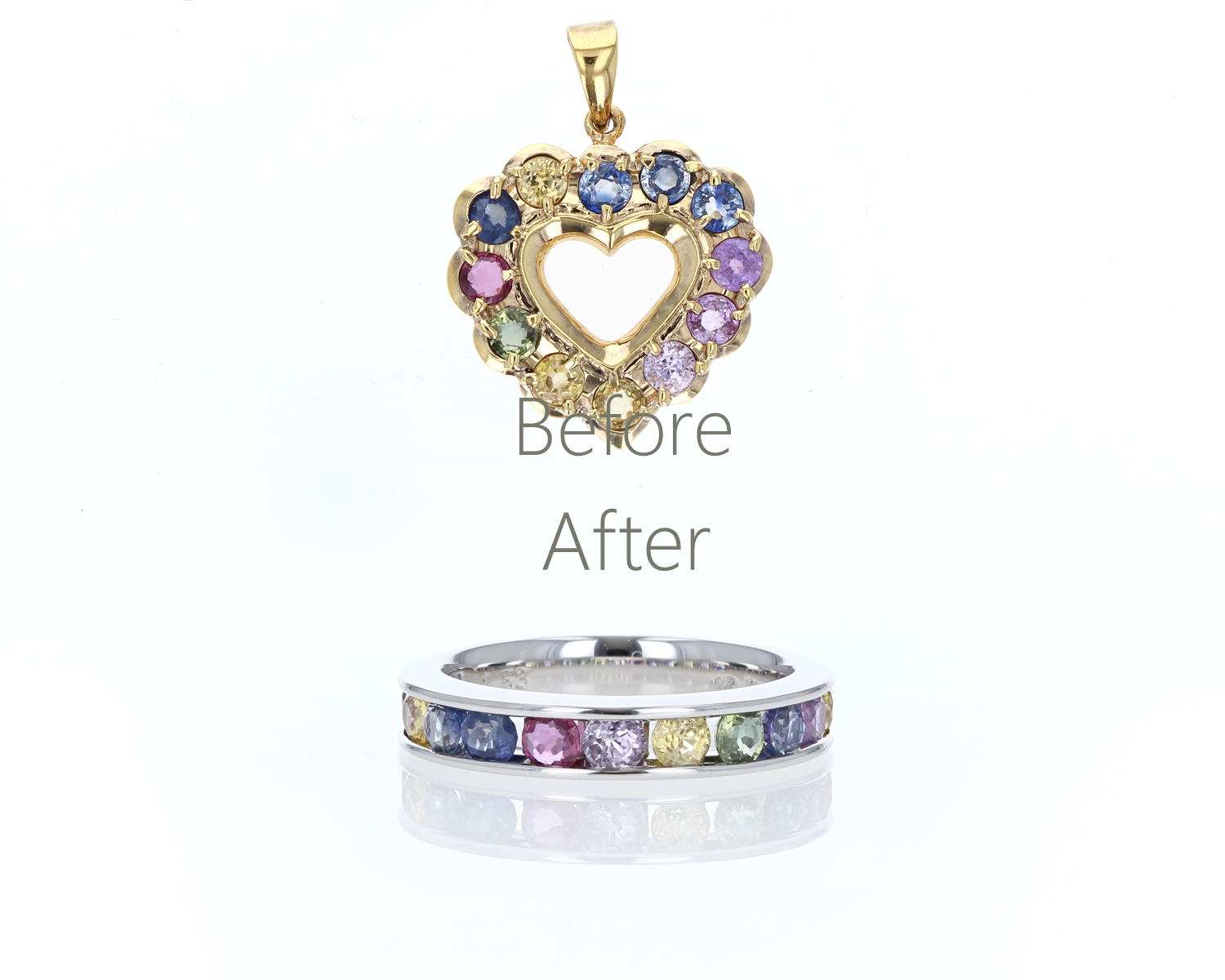 サファイアのペンダントは、引っ掛かりもなく身に着けやすいエタニティータイプへ。