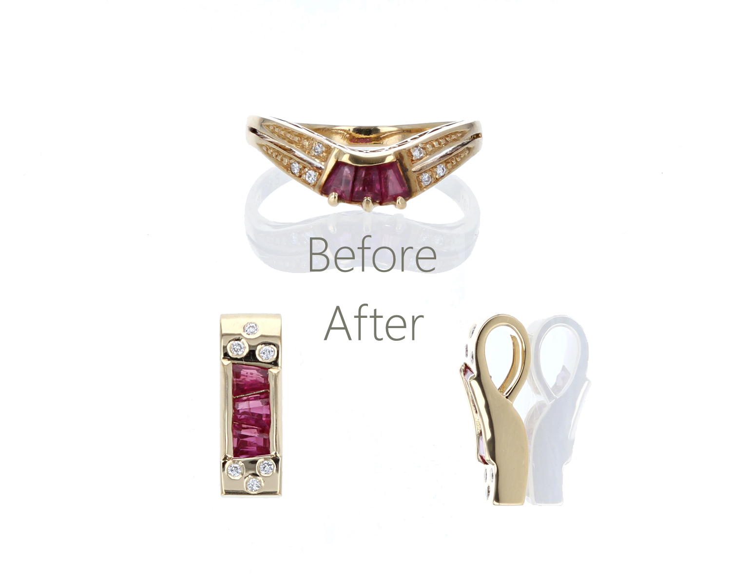 たくさんお持ちの宝石ルースから色や形が一番いいものをピックアップしてK14YGで制作をさせていただきました。決め手はK18YGまで強い色でなくK18PGの可愛らしくすぎないカラーを選んでいただきました。ルビーは華奢のデザインでムーンストーンはコロンとしたデザインでオーダー制作。次回もお気に入りの宝石でリフォームが楽しみですね。お問い合わせ番号 P60654_K56586FRZA_K56585FRZA
