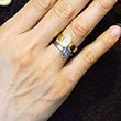 以前、K18リングにて制作したデザインと同じイメージで制作して、重ねて身に着けるという斬新なコーディネートをご提案頂けて制作致しました。職人的にはどちらの宝石も硬度がそれほど強くないので、実は凄くマニアックな制作方法をしています。見る人が見るとこだわりが解るそんな逸品になりました。