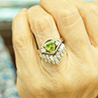 数十年前に当社でご購入し愛用していただいたペンダントを指輪へリフォームいたしました。ラフイメージから後は職人お任せデザインでペリドットの横に空いた空間は大きめなメレダイヤモンドを両サイドにバランスよく石留めし、お持ちの指輪とセットリングとしてぴったりなデザインとなりました。