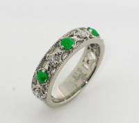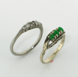 1つダイヤがとれてしまったリングと、翡翠のリング。この2本をアンティーク調にデザインしました。
