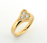 ネックレスのダイヤをうまく使い、ピンキーリングに! ピンクゴールドのピンキーリングで、ハート型のデザインです。かわいらしく、品があるデザインにできあがりました。 お持ちのネックレスは、ダイヤを取り除いたあと、修理してしようできるようにしました。