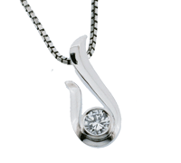 立爪リングをシンプルなペンダントへ!シンプルなペンダントは、たくさんあるけれど、シンプルでオリジナル感があるお気に入りのペンダントが出来上がりました!デザインに動きがあるところがいいですね!