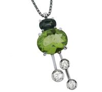 3つの石をうまく組み合わせて1つのペンダントにしました!ぶらぶらとダイヤモンドが揺れるようなデザインにしました。かわいらしいデザインにできあがったので、とても満足しています!