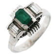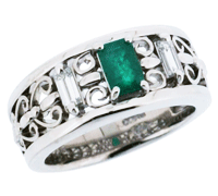 四角いエメラルドとダイヤモンドを唐草模様のデザインに組みこんで、モダンなデザインになりました。四角い石のデザインで、以前は、硬い印象でしたが、リフォームして柔らかく、素敵なデザインになりました。