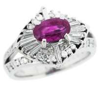 アメリカに住むお母様のために美穂様がリフォームを提案されました。 打ち合わせで色々デザイン案を考えながら創作、 アメリカのリフォームデザインは大雑把でお気に入りにならなかったからだそうです。 ルビーを横位置にモードに配置して煌めきを重視したデザインリングに致しました。