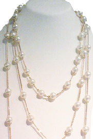 よく好まれるリフォームデザインです。 あまり使わなくなった普通のパールネックレスの間にチェーンをランダムな長さで足してロングネックレスにお作りする「ステーション ネックレス」というデザインに致しました。 今、現代のファッションへ是非 ◎