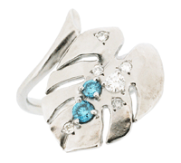 フラダンスをしているお客様よりハワイアンモチーフでリフォームして欲しいとのお願いがありました。いろいろモチーフについて打ち合わせでお話した結果、代表的な植物「モンステラ」をデザインすることになりました。ネックレスとリングのセットジュエリー!フラダンスの時にもきっとお似合いになる逸品に仕上がりました。