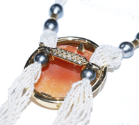 昔からイタリアの細工として人気の「カメオ」、素晴らしい作品なのですが 最近身に着ける機会が減っていませんか?。ということで考えましたのがネックレスに アレンジして様々な用途を楽しめる、2WAY.3WAYなどなど服装に合わせて七変化できる ジュエリーです。これでまたカメオがジュエリーとして身に着けてもらえれば、 きっと喜びも再び生まれて来ますね。