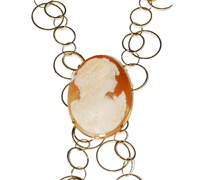 昔からイタリアの細工として人気の「カメオ」、素晴らしい作品なのですが最近身に着ける 機会が減っていませんか? 特に若い世代に受け継がれた時どうやって身に着けていいものか...。 ということで考えましたのが、カジュアルアクセサリーのような使い方をするご提案です。 ネックレスにして楽しめる気楽なジュエリーです。これでまたカメオがジュエリーとして身に 着けてもらえれば、きっと喜びも再び生まれて来ますね。