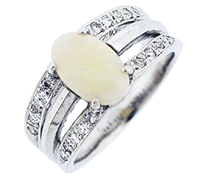 ボリューム感と品がある指輪に変身しました。 ダイヤモンドが両サイドから輝きオパールの美しさをプラスしています。 オパールもリフォーム後は生き生きとしていますね。