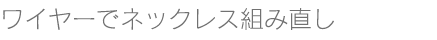 ワイヤーは強度あります。天然石が入ったネックレスや、糸では組めない小さい真珠に適しています。1度バラして新品のワイヤーで組み直しをします。※切れてしまった場合パーツがバラバラ散らばってしまった場合、出来る限りパーツを拾ってください。数が少なくなると長さが足りなくなります。