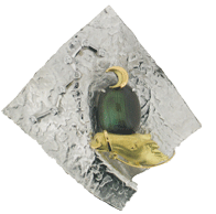 坂 直樹のオーダー作品集~私の想い出の作品たち~ デザイン製作 貴金属装身具1級技能士・社団法人日本ジュウリーデザイナー協会会員・G.G(宝石鑑定士) 武蔵野美術大学卒業 コメント 自然のモチーフや自然の流れをテーマに、宝石の魅力を引き出したデザインを心がけています。お客様とは、イメージをしっかり打ち合わせ、常に身に着けて頂けるように1つ1つデザイン製作を頑張っています。 こちらの作品のコメント 「トロイの木馬」という題名で、製作した作品です。物語のワンシーンをふと想いを、馳せるような、そんな遊び心のある作品に仕上げました。 こちらのデザインの思い出のキーポイント ブローチの特徴としてあまり重すぎると身に着けた時に、洋服の負担がかかるので、できる限り軽く製作することと全体のボリュームバランスがそこなわれないように逸品製作を致しました。