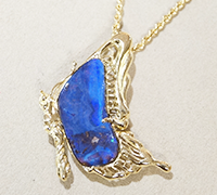 2000年頃、ヴァンモアが宝飾品としてでありアートである作品を創るという思想から。ボルダーオパールをデザイン創作した作品。お客様がご購入されてから15年、今もお気に入りで身に着けて頂けています。職人としても持っている全ての技術とデザインセンスを出来る限り絞り出して表現した作品でしたので、とても記憶に残っており感慨深い気持ちです。お客様とのジュエリーを通しての出会い、大変感謝しています。