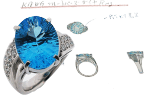 大西 洋光のオーダー作品集~私の想い出の作品たち~ デザイン・営業 オリジナルジュエリーのデザイン開発、リフォーム、オーダーのデザイン受注 コメント ジュエリーは、人生に華をそえるものです。そのロマンティックな気持ちを大切にして、存在感のあるジュエリーを創り続けたいと思います。 K18WGブルートパーズダイヤモンドリング こちらの作品のコメント デザインのテーマは、インパクトのあるジュエリーです。目の醒めるような鮮やかなオーバルコンケイブカットのブルートパーズを、あえて斜めにセットすることで、動きのあるフォルムにしました。 こちらのデザインの思い出のキーポイント K18WGブルートパーズ ダイヤモンペンダント