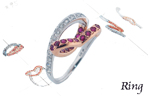 ダイヤとルビーを多数お持ちでしたので、それをできるだけ使用して、飽きのこない、なおかつ少し遊び心をプラスした形にしました。 |