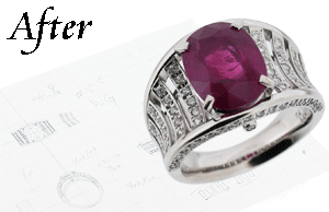 田島 浩一のオーダー作品集~私の想い出の作品たち~ 製作 貴金属装身具1級技能士 コメント 使用時の簡便さ、はめごごちなどをお客様の立場になって制作・修理しています。 before こちらの作品のコメント 少しボリュームがあるデザインなので、見た目より軽く仕上げるように工夫しました。