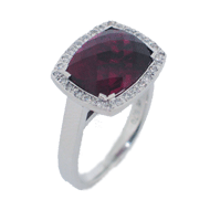 田島 浩一のオーダー作品集~私の想い出の作品たち~ 製作 貴金属装身具1級技能士 コメント 使用時の簡便さ、はめごごちなどをお客様の立場になって制作・修理しています。 Pt900ガーネットダイヤモンドリング こちらの作品のコメント 少しボリュームがあるデザインなので、見た目より軽く仕上げるように工夫しました。 こちらのデザインの思い出のキーポイント 特徴のある構造をしているため、製作時には、全てのパーツを全面磨き終えてから組み立てました。