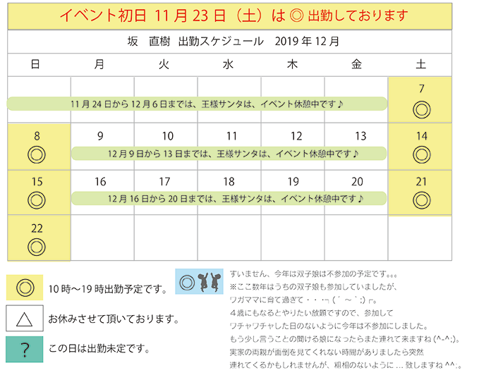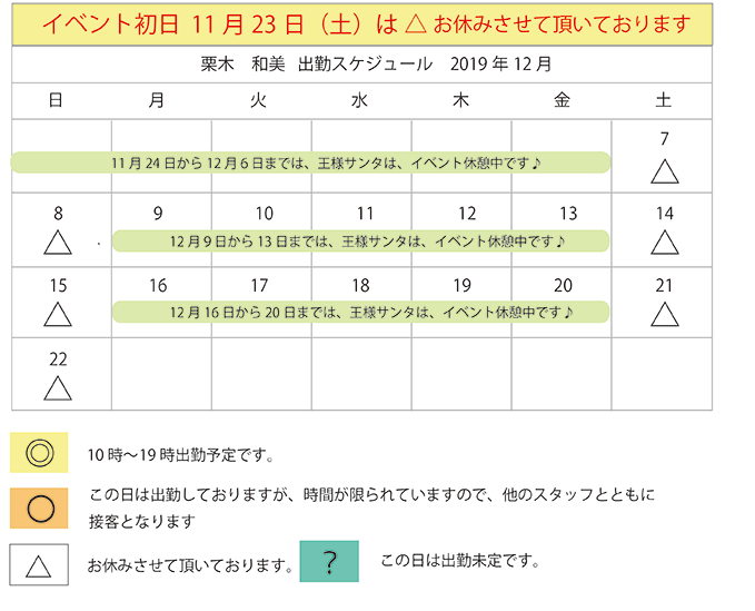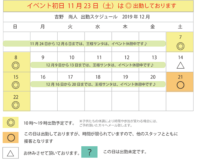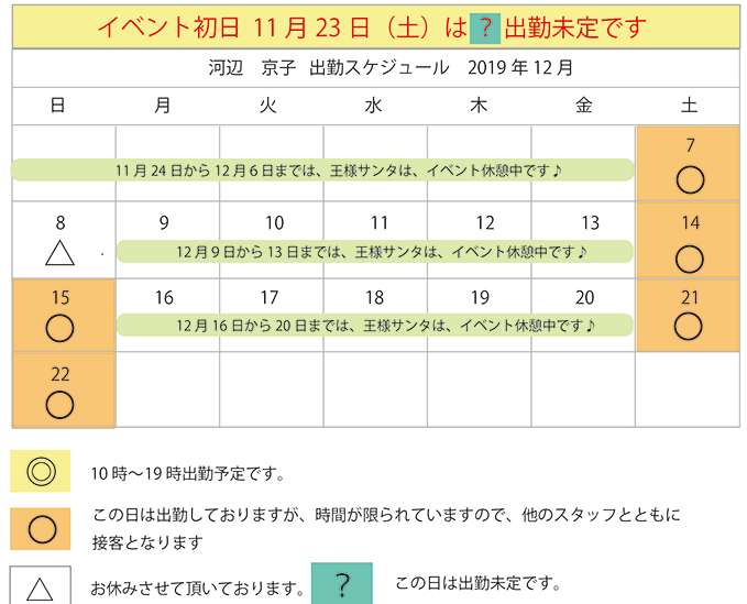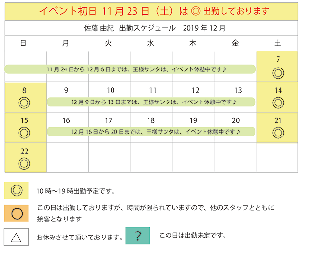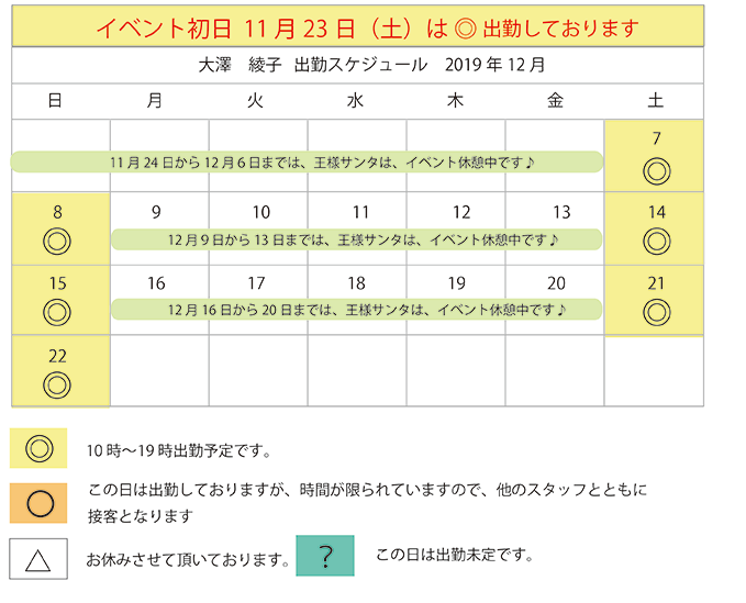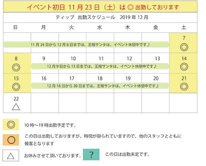2019年クリスマスイベント開催日のみ表示しています。